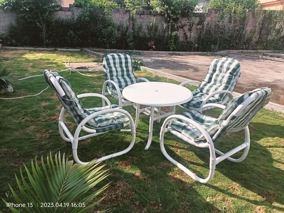 ชุดเก้าอี้และโต๊ะกลางแจ้งทำจากพีวีซีสำหรับสวน