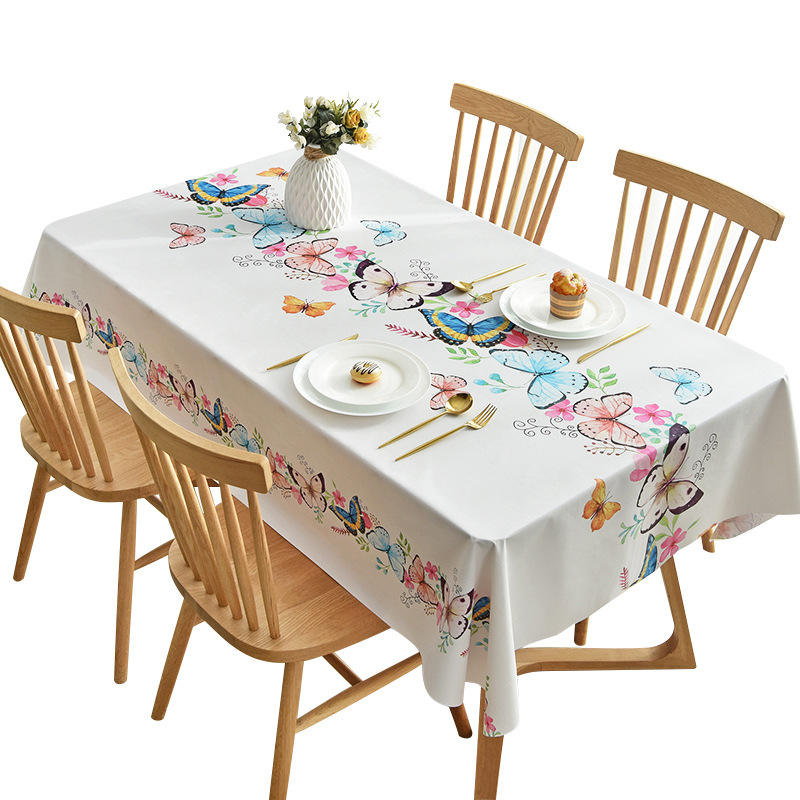 ผ้าปูโต๊ะพีวีซีพิมพ์ลายรูปสี่เหลี่ยมผืนผ้า กันน้ำ สำหรับใช้ในบ้าน ลายผีเสื้อและดอกไม้ สำหรับคลุมโต๊ะอาหาร