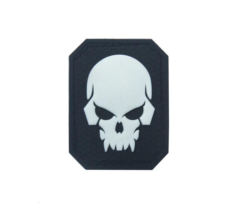 แผ่นยางพีวีซีเรืองแสงในรูปหัวกะโหลกสไนเปอร์เรืองแสงตะขอปลอกแขนแบบปะติดสำหรับเสื้อผ้ากระเป๋าเป้สะพายหลัง
