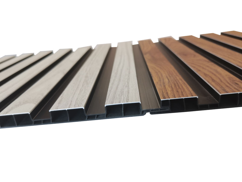 พีวีซีแผ่นผนังไม้ระแนงสำหรับการตกแต่งผนังภายในในผลไม้