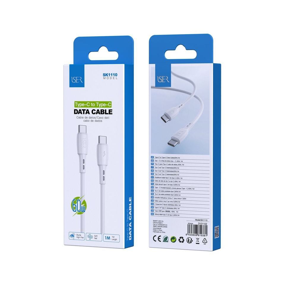 สายเคเบิลข้อมูล PVC Type-C ถึง Type-C 60W 1M สีขาว-ชาร์จเร็วสำหรับอุปกรณ์