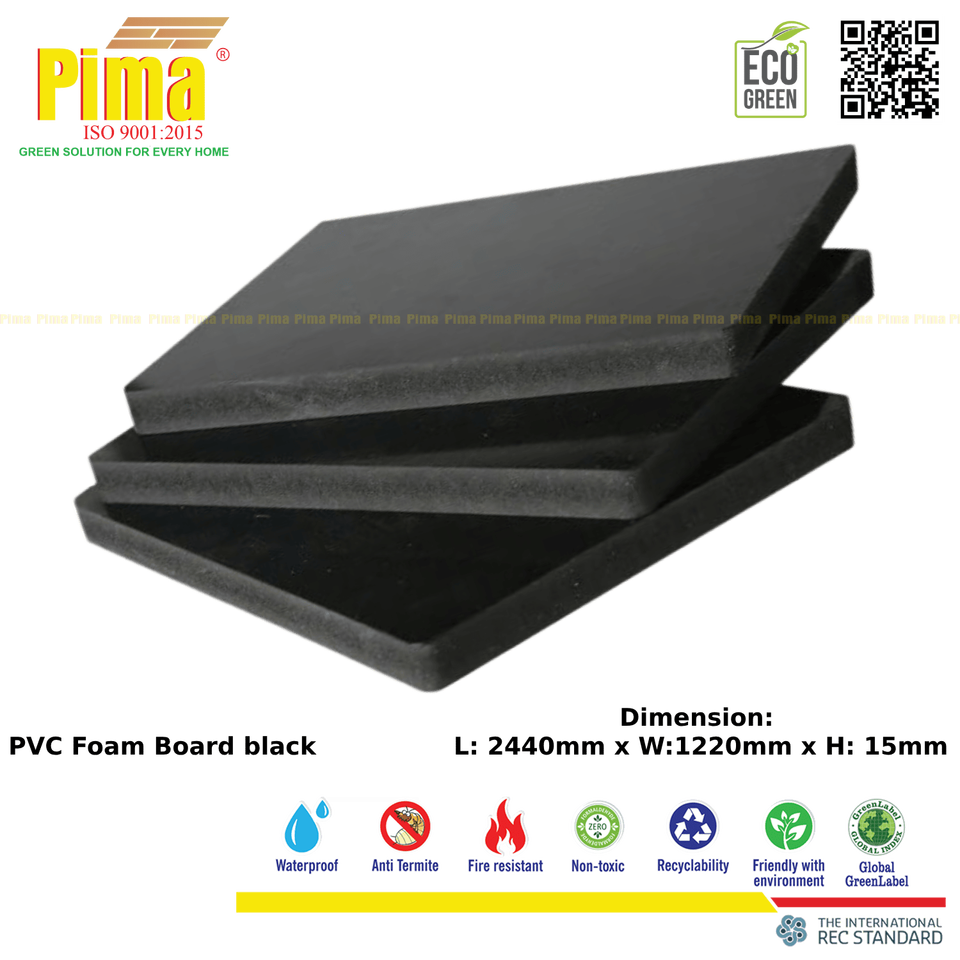 แผ่นพีวีซี WPC โฟมบอร์ดหนา15มม. 0.6ก./สีดำความหนาแน่น cm3วัสดุพลาสติกน้ำหนักเบาเฟอร์นิเจอร์ป้องกันปลวก