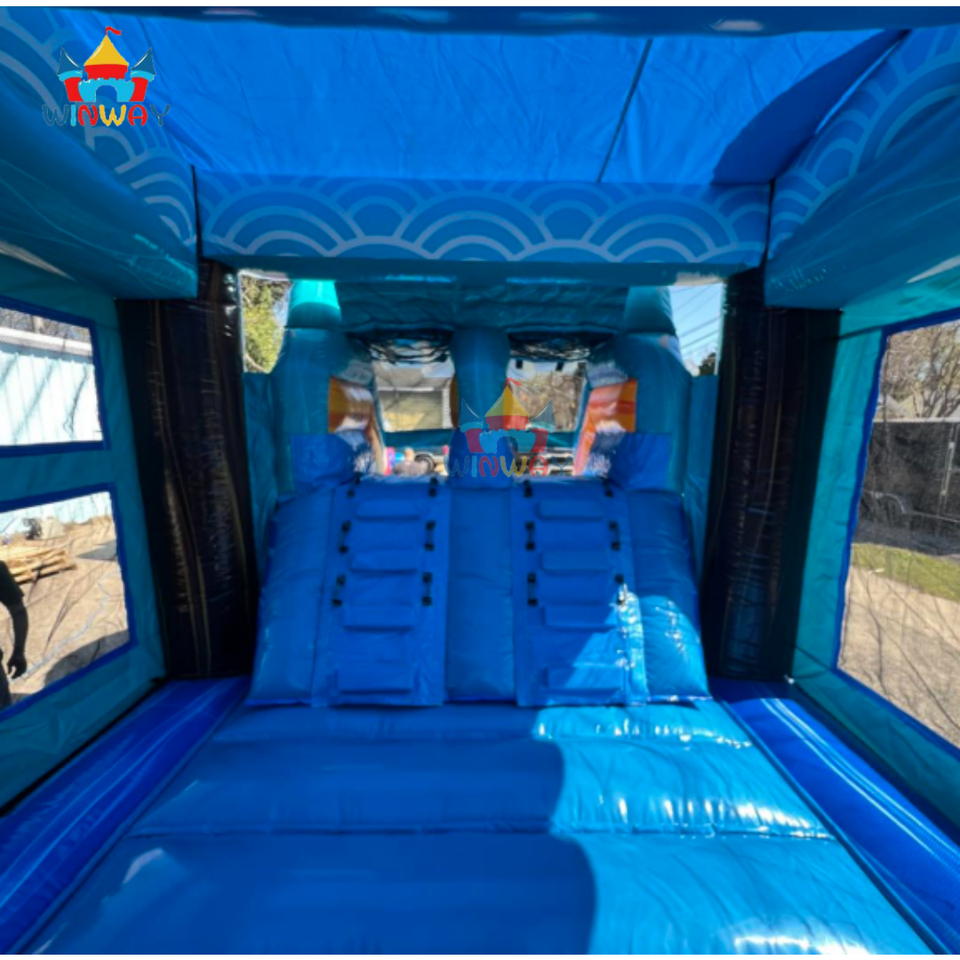 พีวีซีเครื่องเป่าลมรูปต้นมะพร้าวหินอ่อนแบบไล่ลมสำหรับเช่าบ้านเป่าลมเขตร้อน