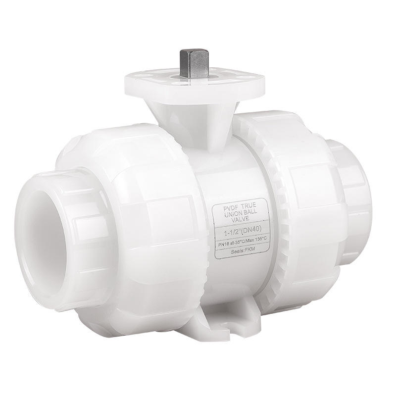 วาล์วบอล PVDF แบบแพลตฟอร์มสูง พร้อมตัวกระตุ้นแบบติดตั้งโดยตรงแบบข้อต่อคู่ ติดตั้งรวดเร็ว ทนทานต่อกรด/ด่าง ทนอุณหภูมิสูง