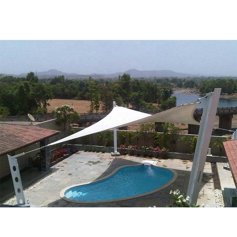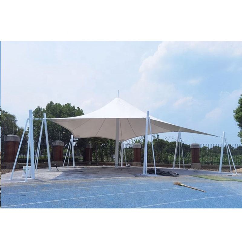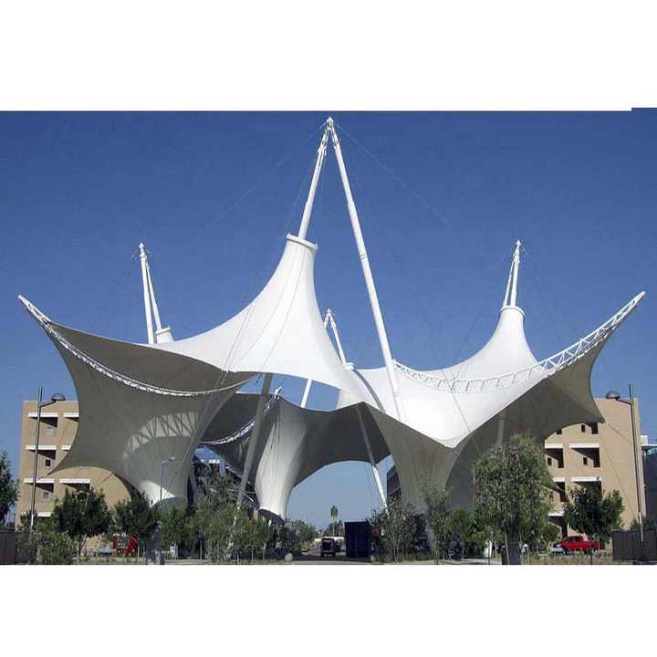 ผ้าใบกันแดด PVDF สำหรับงานสถาปัตยกรรมและภูมิทัศน์ โครงสร้างเหล็กแบบดึงตึง