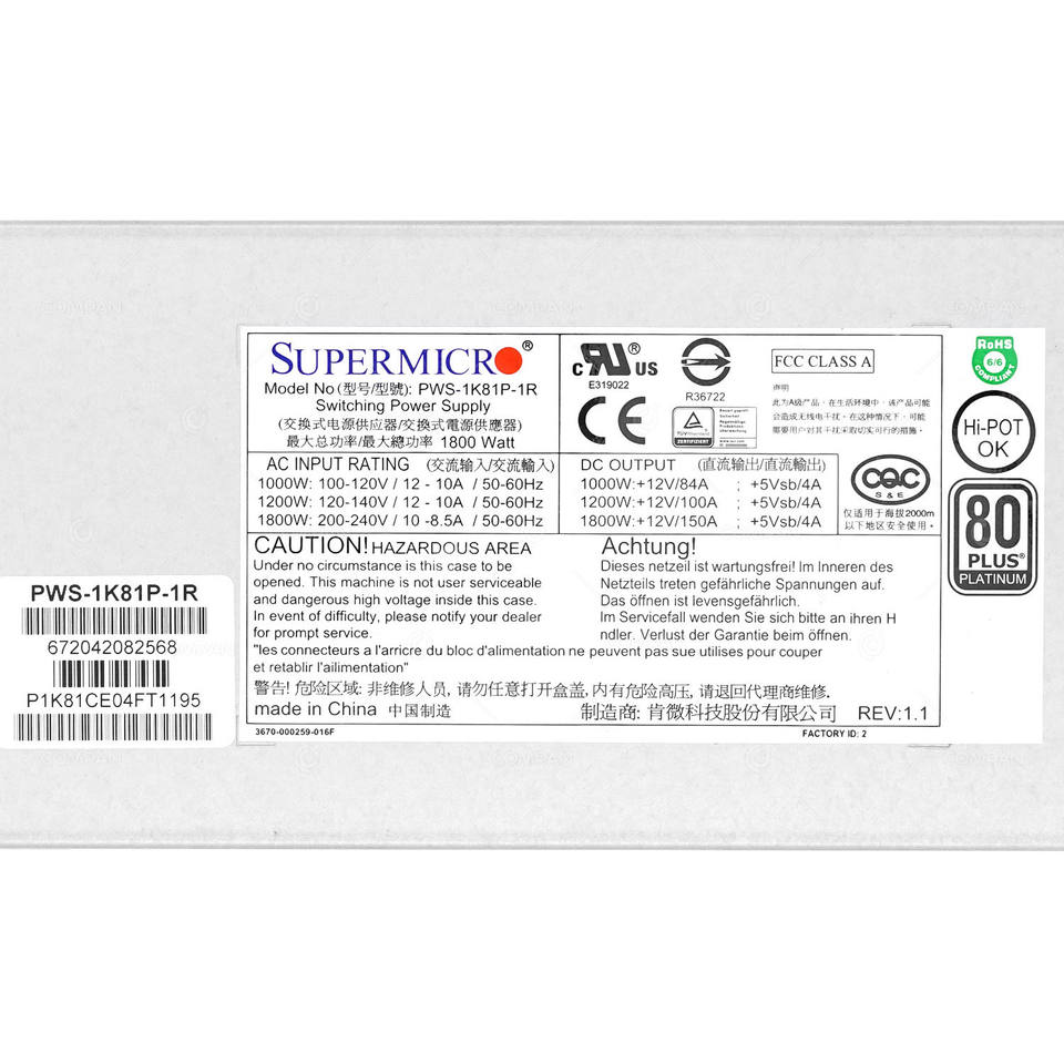 PWS-1K81P-1R SUPERMICRO 80 PLUS PLATINUM 1800W แหล่งจ่ายไฟแบบสวิตชิ่งสำหรับ NUTANIX NX-7110 ปรับปรุงใหม่
