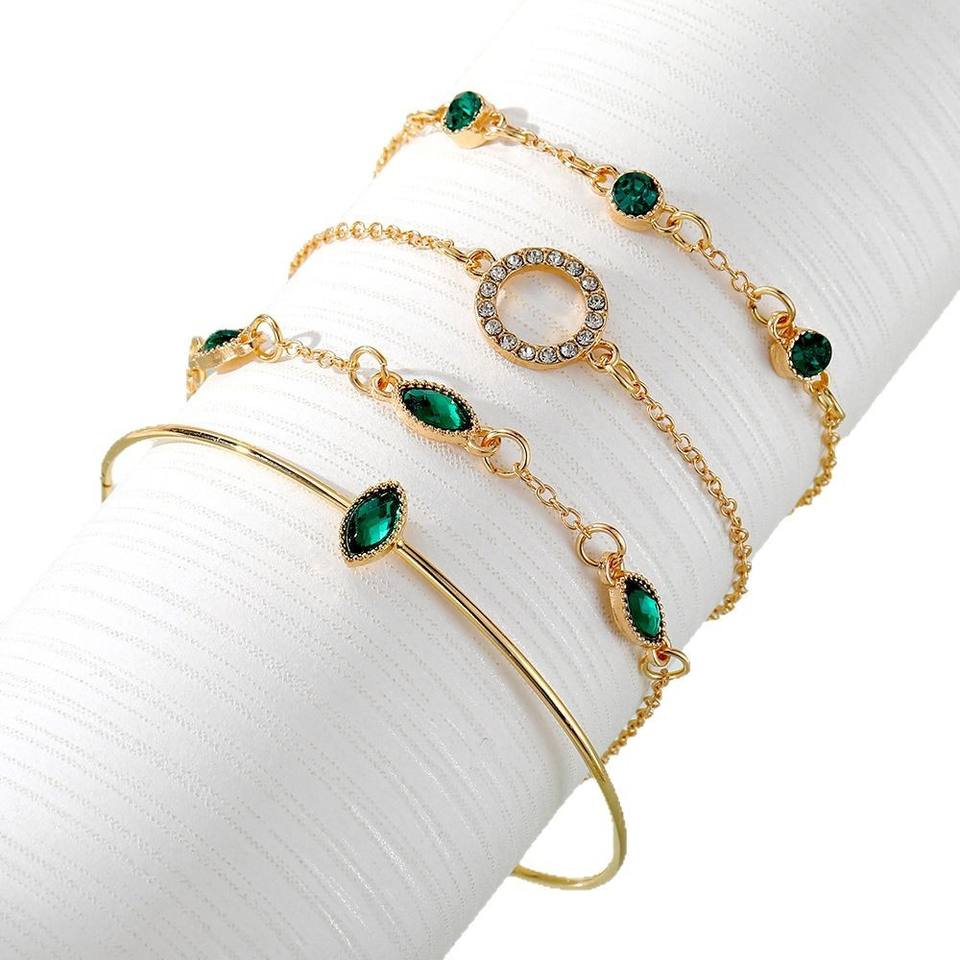 ชุดกำไลข้อมือผู้หญิงสไตล์วินเทจชุบทอง PX Fashion ประดับคริสตัลรูปทรงเรขาคณิต พร้อมเพชรทรงเหลี่ยมมรกต ชุดกำไลสี่ชิ้น