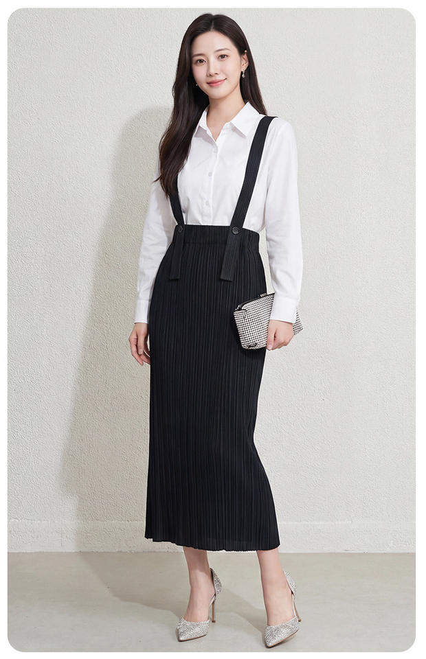 กระโปรงพลีทสไตล์เกาหลีแบบลำลอง รักษ์โลก ระบายอากาศได้ดี ความยาวปานกลาง เอวธรรมชาติ สีดำ แบบมีสายรัด สำหรับผู้หญิง เสื้อผ้าขายส่ง
