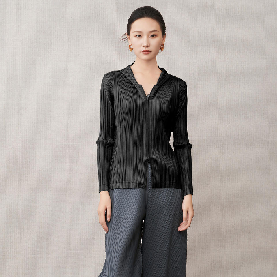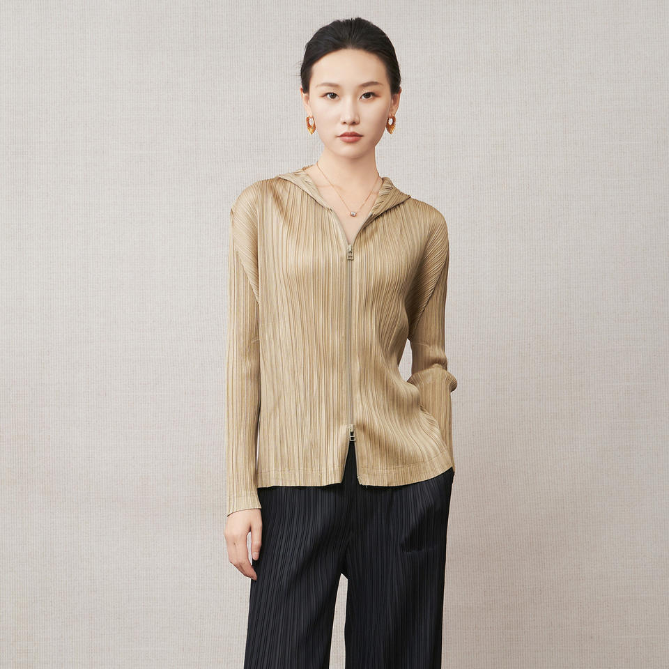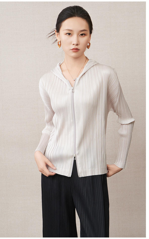 เสื้อโค้ทผู้หญิง PY สำหรับฤดูใบไม้ผลิ ผ้าบาง ระบายอากาศได้ดี ดีไซน์หรูหรา จับจีบ มีฮู้ด กระดุมเดี่ยว สไตล์เกาหลี ขายส่งออนไลน์