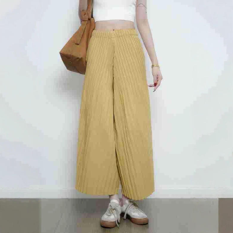 กางเกงพลีทเนื้อผ้าระบายอากาศดี ทรงหลวม สไตล์ลำลอง ขากว้าง ไซส์ใหญ่ แฟชั่นเกาหลี ดีไซน์ทันสมัย ขายส่งออนไลน์