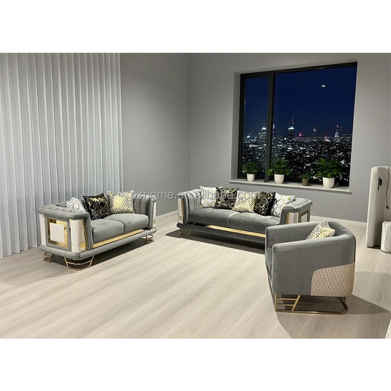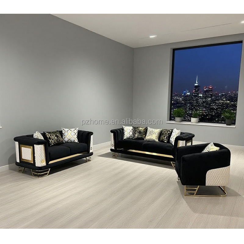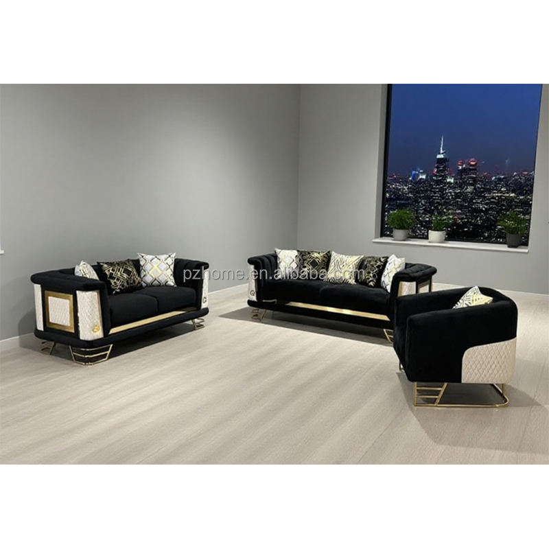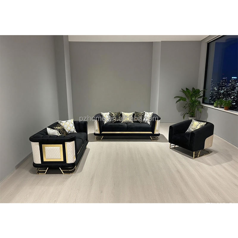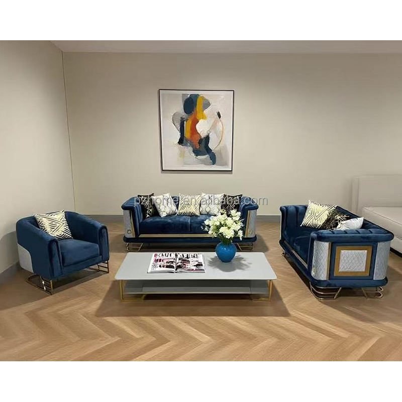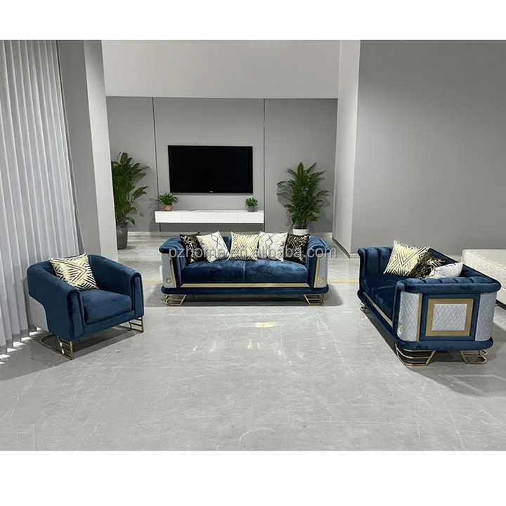 Pzcn โซฟาสีฟ้าสีกรมท่าหรูหรา, โซฟาห้องนั่งเล่นเฟอร์นิเจอร์1 + 2 + 3ที่นั่งตกแต่งด้วยทองคำ