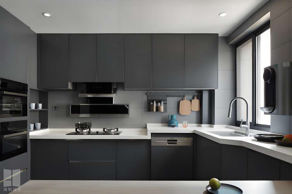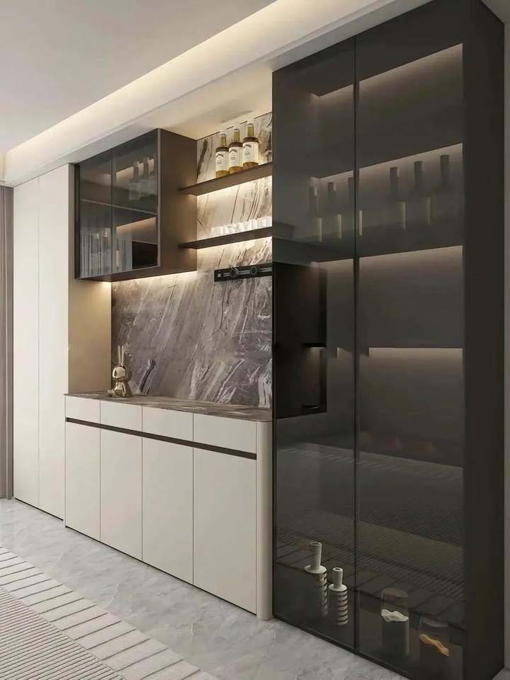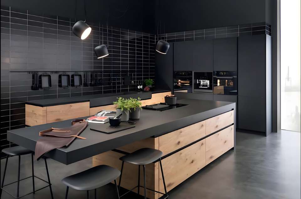 ตู้ครัวและตู้รับประทานอาหารไม้สไตล์โมเดิร์นสุดหรู พร้อมเคลือบสีดำ