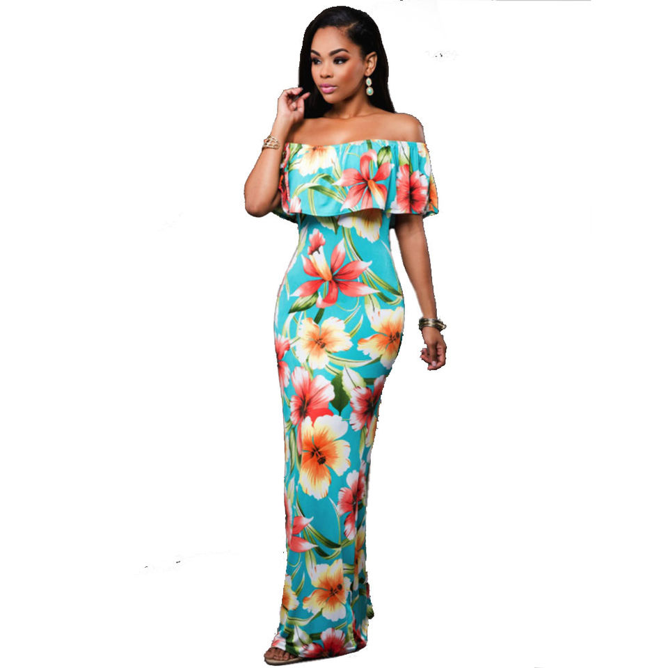 ชุดเดรสเปิดไหล่สไตล์เม็กซิกันสำหรับผู้หญิงชาวเกาะแปซิฟิก ชุดเดรสลายชนเผ่าโพลินีเซียนแบบดั้งเดิม