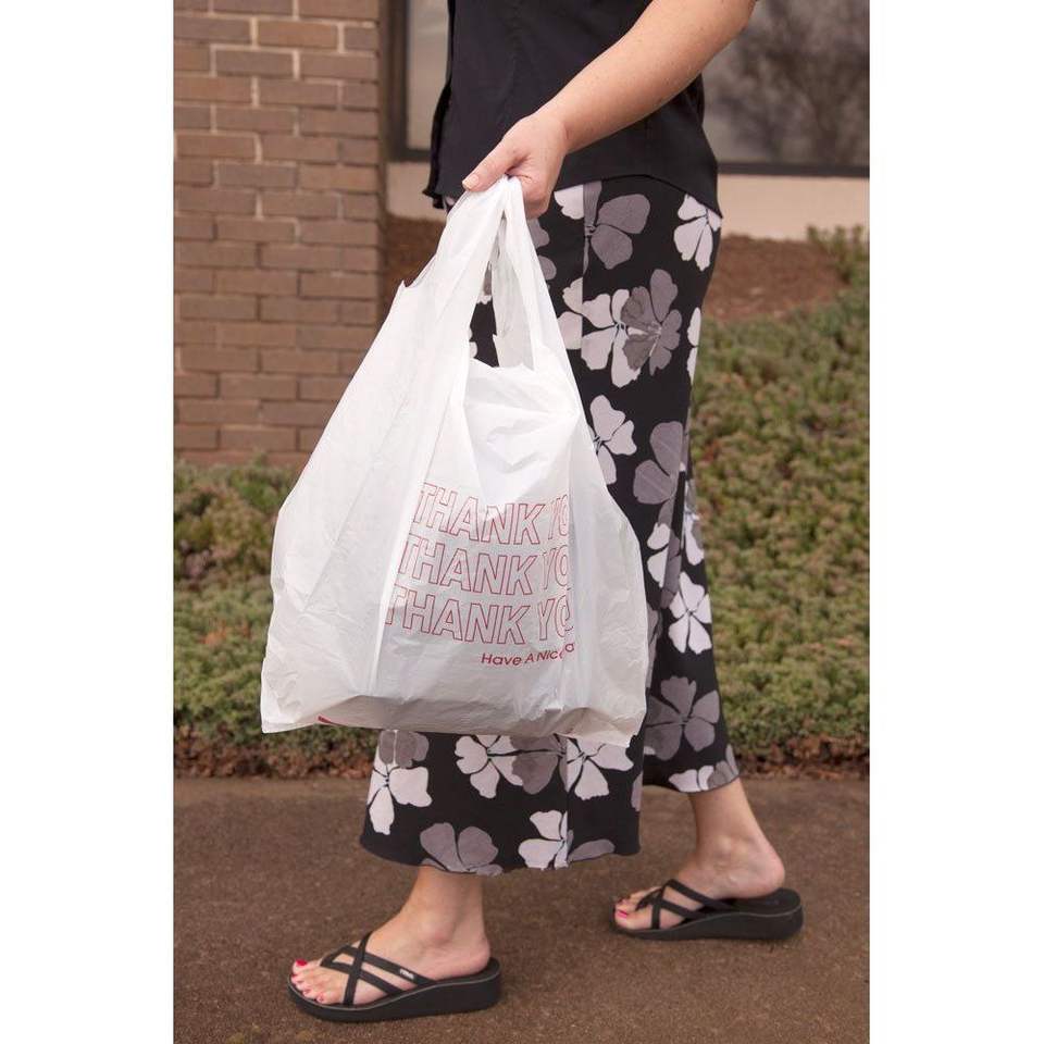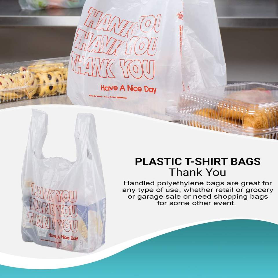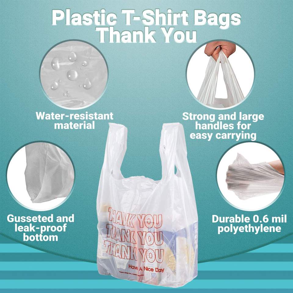 Pack 1000 Reusable Preprinted 12x7x23 Thickness 0.65 Mil Plastic Shopping Bags Durable Carry-Out T-Shirt Bags for Retail