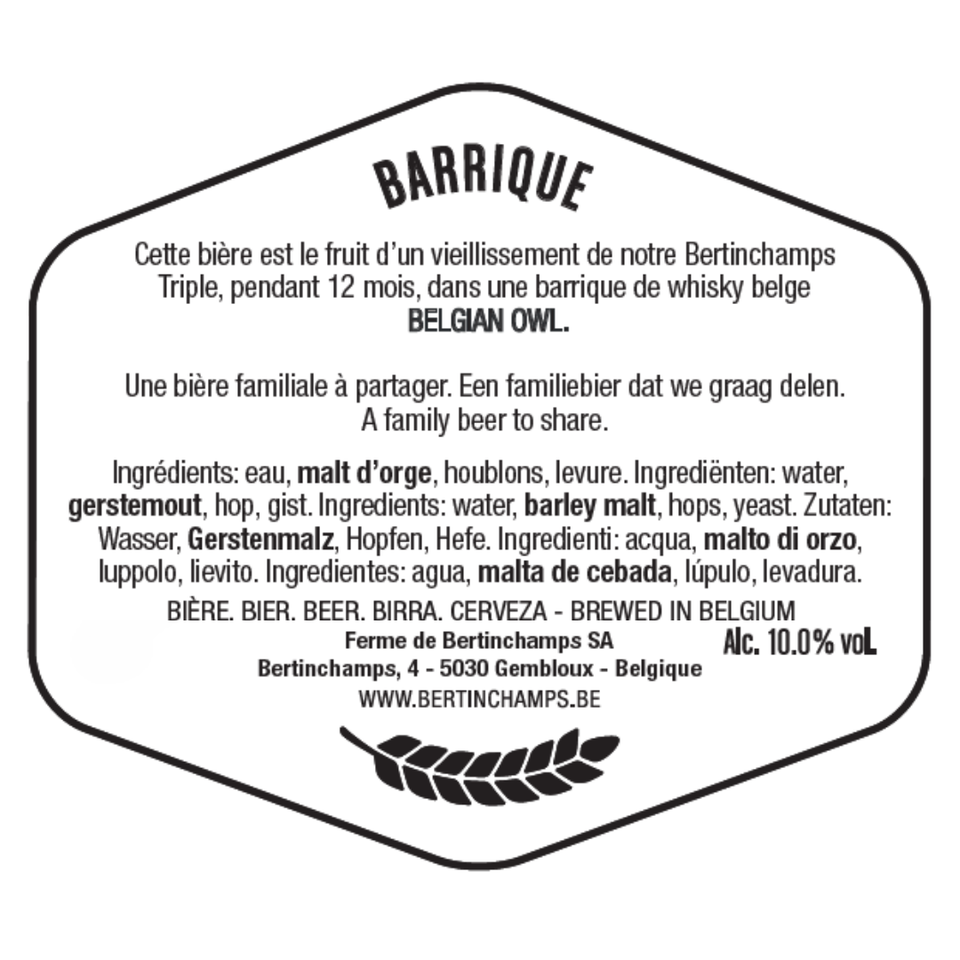 12x50cl สำหรับผลิตเบียร์บาร์ริเก้เบอร์ตินแชมป์รุ่นจำกัดเบลเยียมฉลากสีขาวประจำฤดูกาลส่งออกเบียร์พรีเมี่ยม