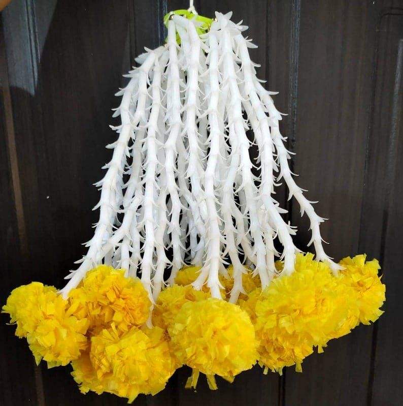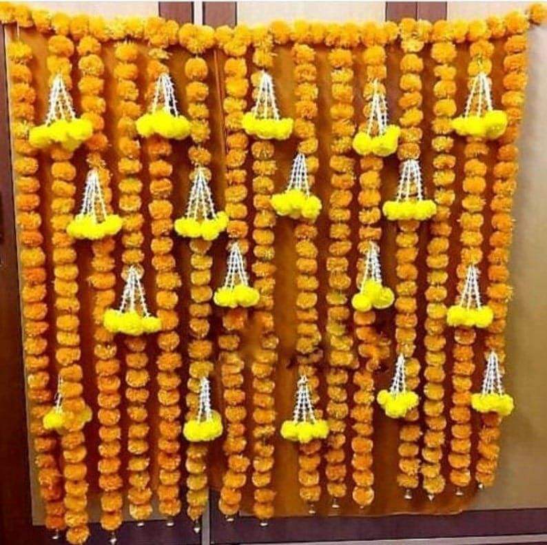 แพ็คของ10พวงมารีโกลด์พู่สำหรับตกแต่งเวที rajnigandha latindian ดอกไม้อินเดียตกแต่ง haldi ประดับพู่