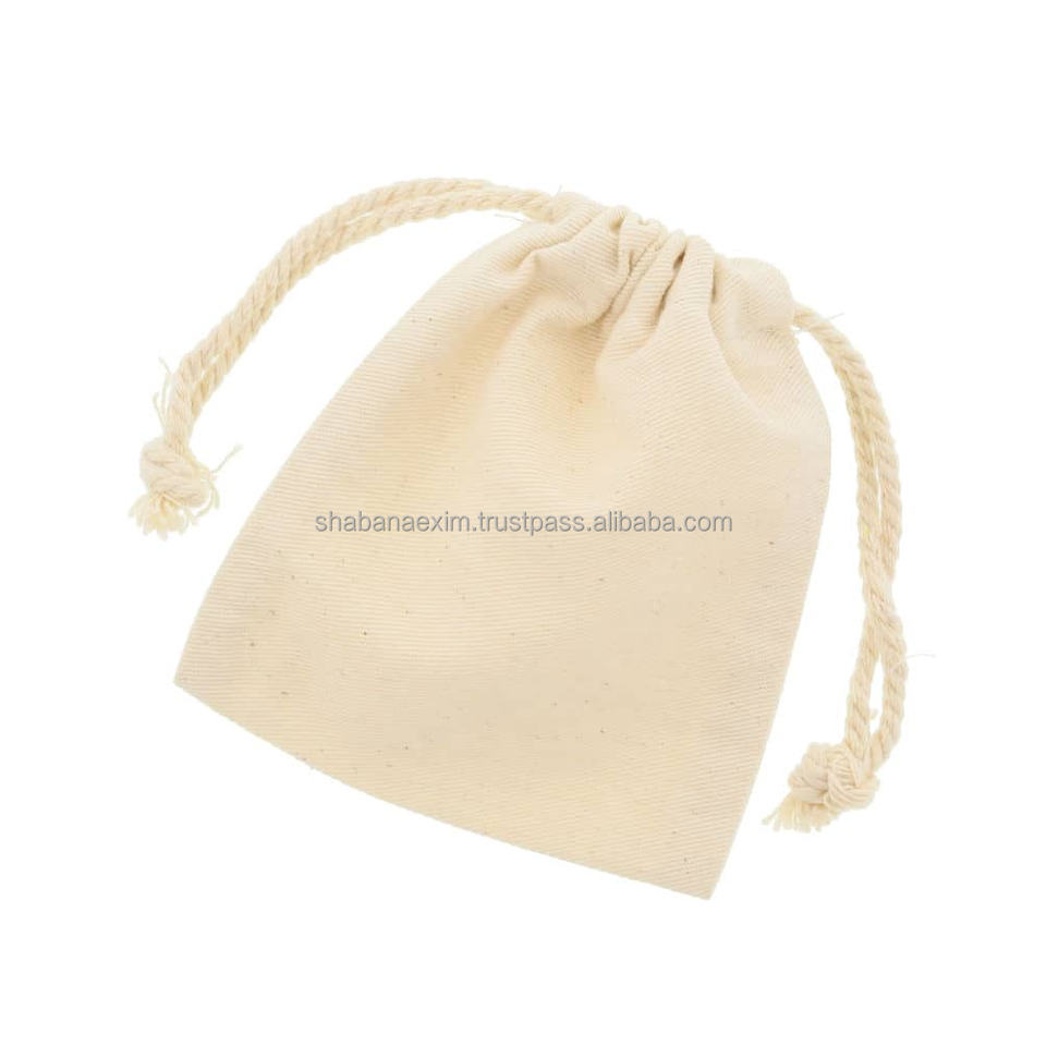 ถุงผ้าแคนวาสพิมพ์ลายพร้อมเชือกผูก ถุงผ้าฝ้ายสีขาวขนาดใหญ่แบบใช้ซ้ำได้ สำหรับจัดเก็บของขวัญงานแต่งงาน