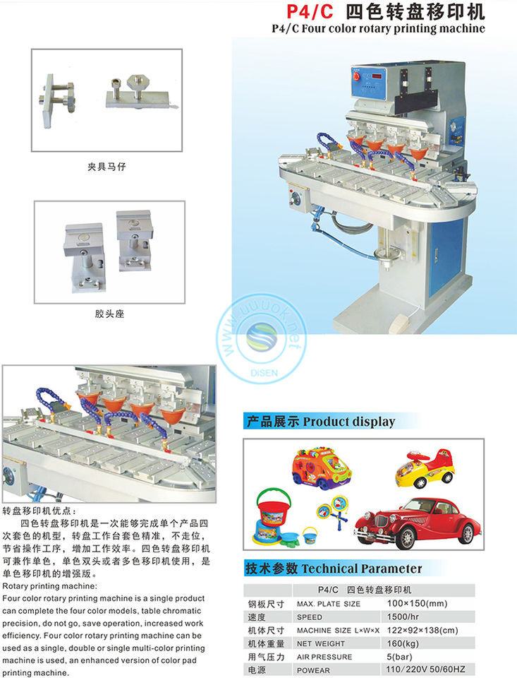เครื่องพิมพ์แผ่น M4 /S ขนาดใหญ่อัตโนมัติ4สี Pad เครื่องพิมพ์นาฬิกาหน้าปัดของเล่นรองเท้าเลโก้4สีหลอดเครื่องพิมพ์หลายสี