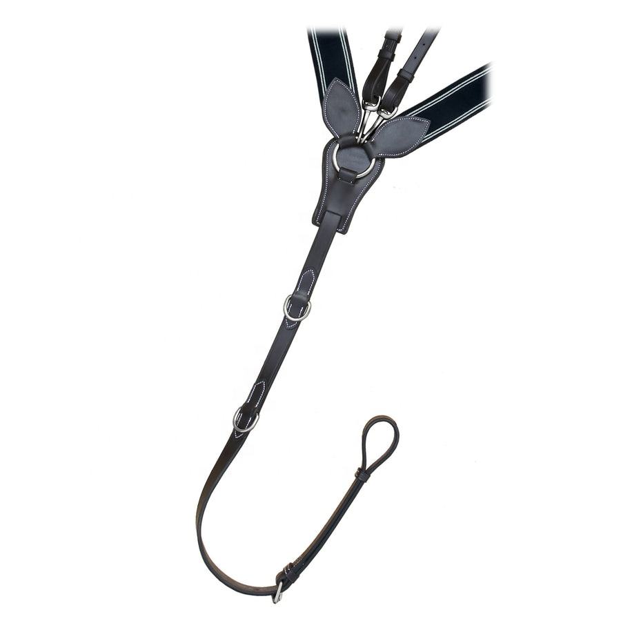 Padded Leaf Shape Horse Breastplate with Running Attachment Navy Elastic with White Lines