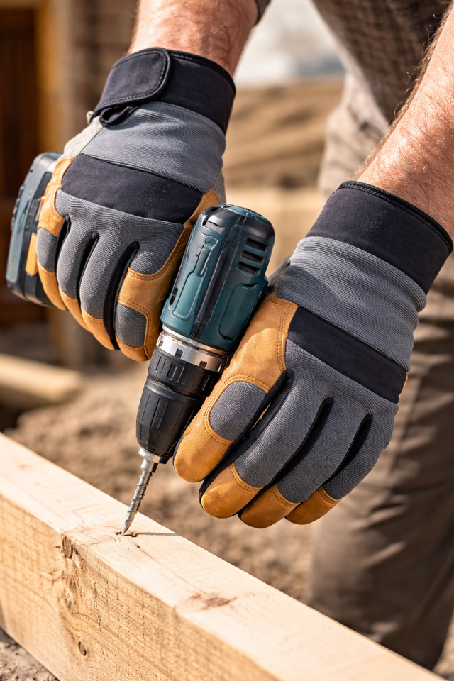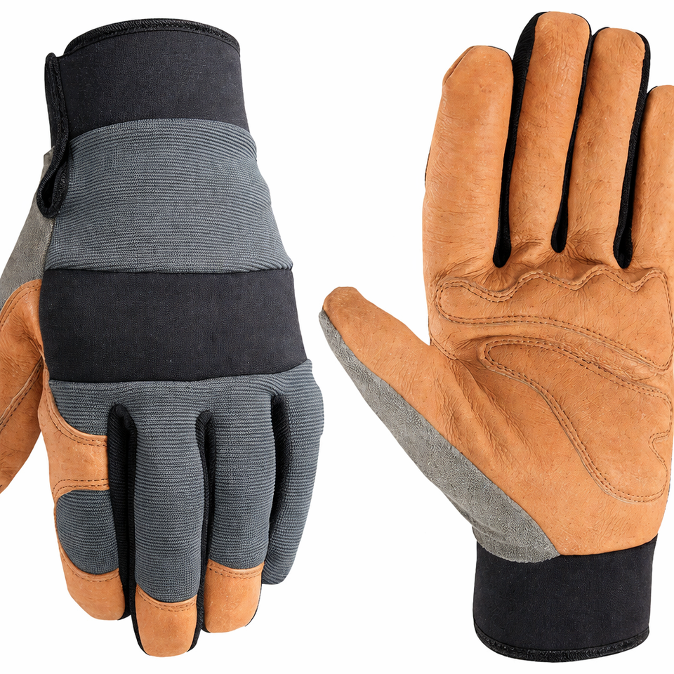 ถุงมือหนังบุฟองน้ำพร้อมที่รองข้อมือสำหรับงานช่างไม้ งานก่อสร้าง และการใช้งานเครื่องมือไฟฟ้า พร้อมตัวเลือกสกรีนโลโก้