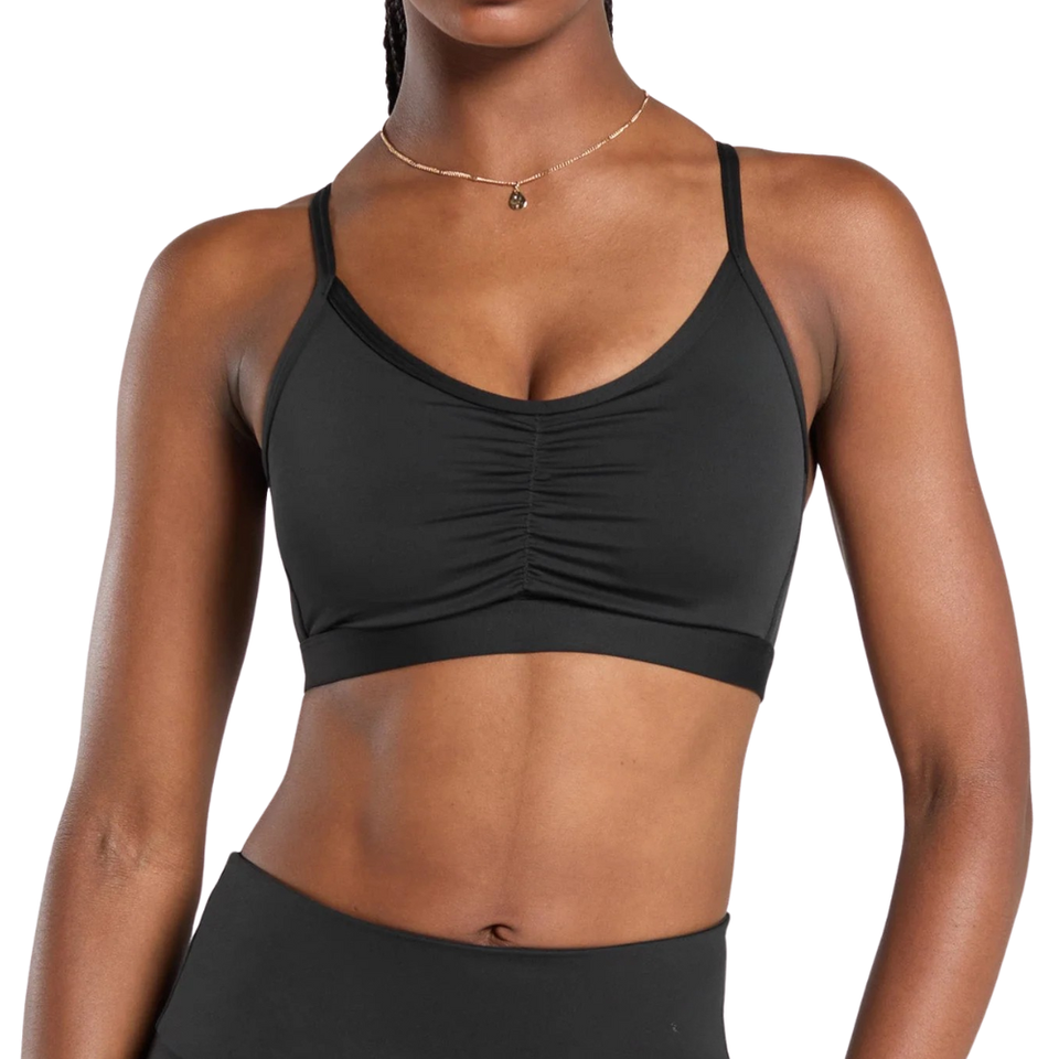 เสื้อชั้นในกีฬาแบบมีฟองน้ำสำหรับผู้หญิง เสื้อชั้นในออกกำลังกายแบบรัดหน้า ด้านหลังไขว้ สำหรับฟิตเนสและแอคทีฟแวร์ รับสกรีนโลโก้