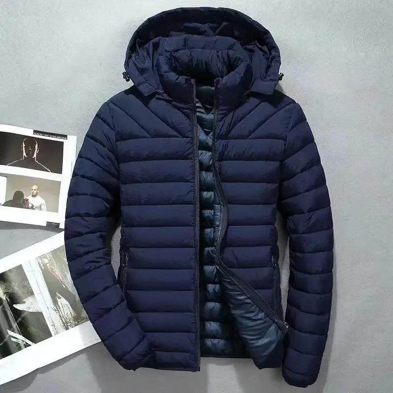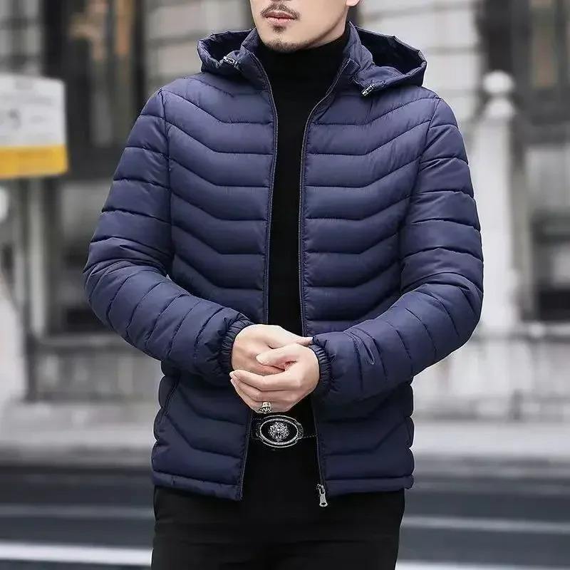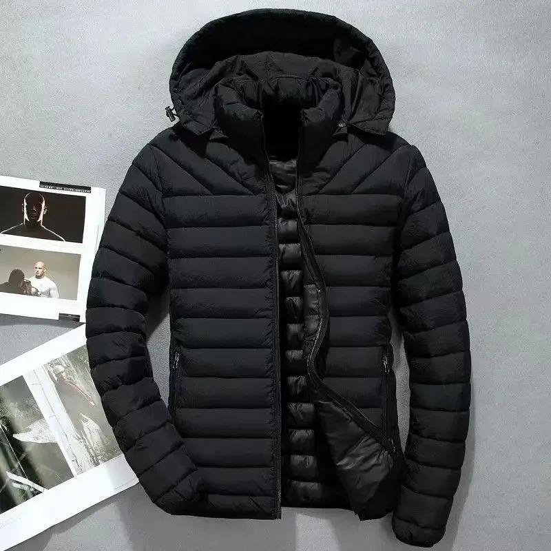 เสื้อแจ็คเก็ตพัฟเฟอร์มีฮู้ดสำหรับผู้ชาย คอตั้ง ผ้าไนลอนแคนวาส 100% น้ำหนักเบา ระบายอากาศได้ดี สไตล์ไฮสตรีท แฟชั่นฤดูหนาวสำหรับวัยรุ่น