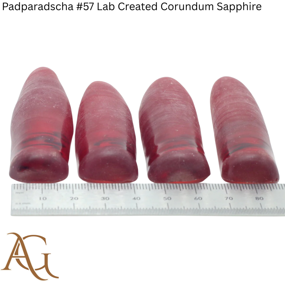 พัพพารัตชา # แซฟไฟร์คอรันดัมสังเคราะห์ 57 เม็ด ผลิตในห้องปฏิบัติการ ด้วยวิธีการหลอมรวมแบบเปลวไฟ สำหรับการเจียระไนและตกแต่งอัญมณี