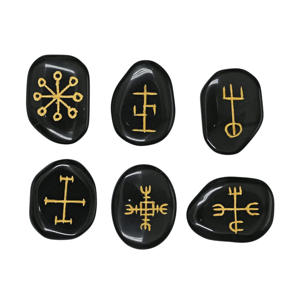 Pagan wiccan Nordic Viking runes หินชุด6หินโมราสีดำ