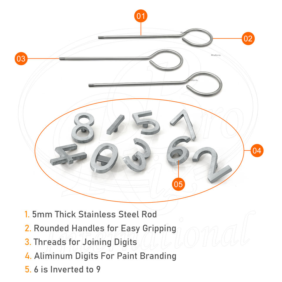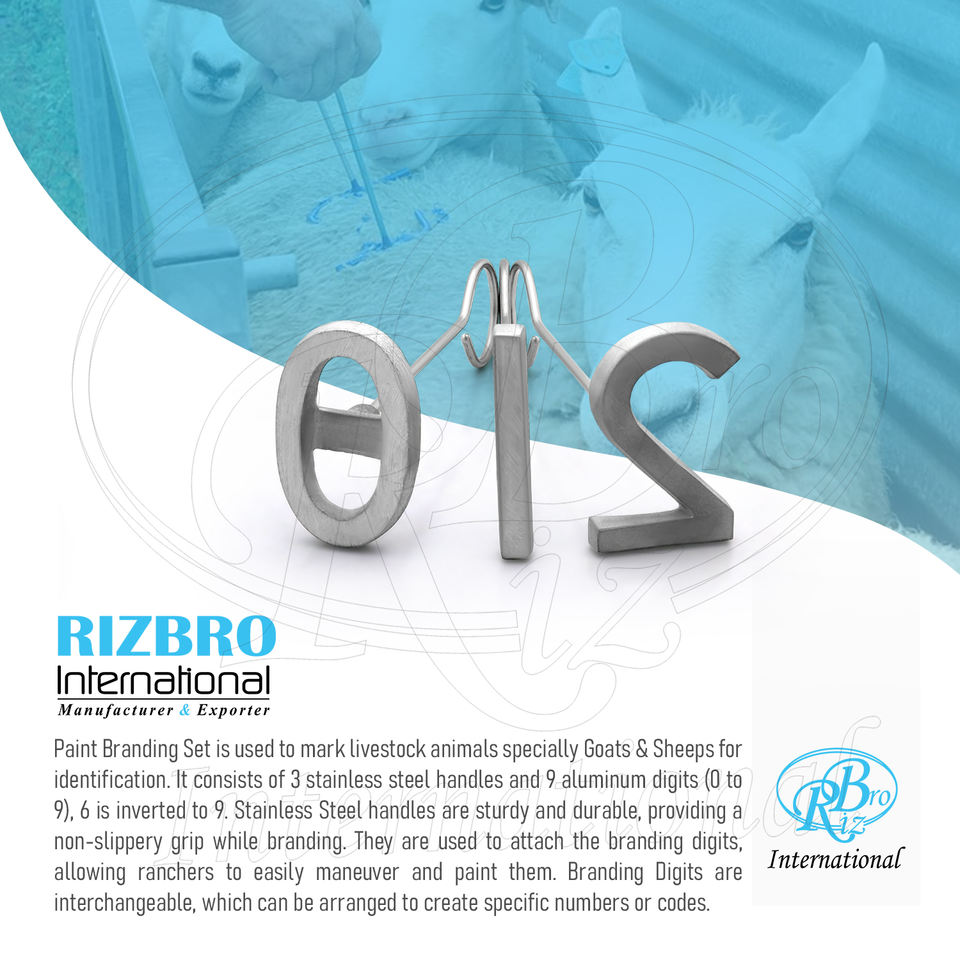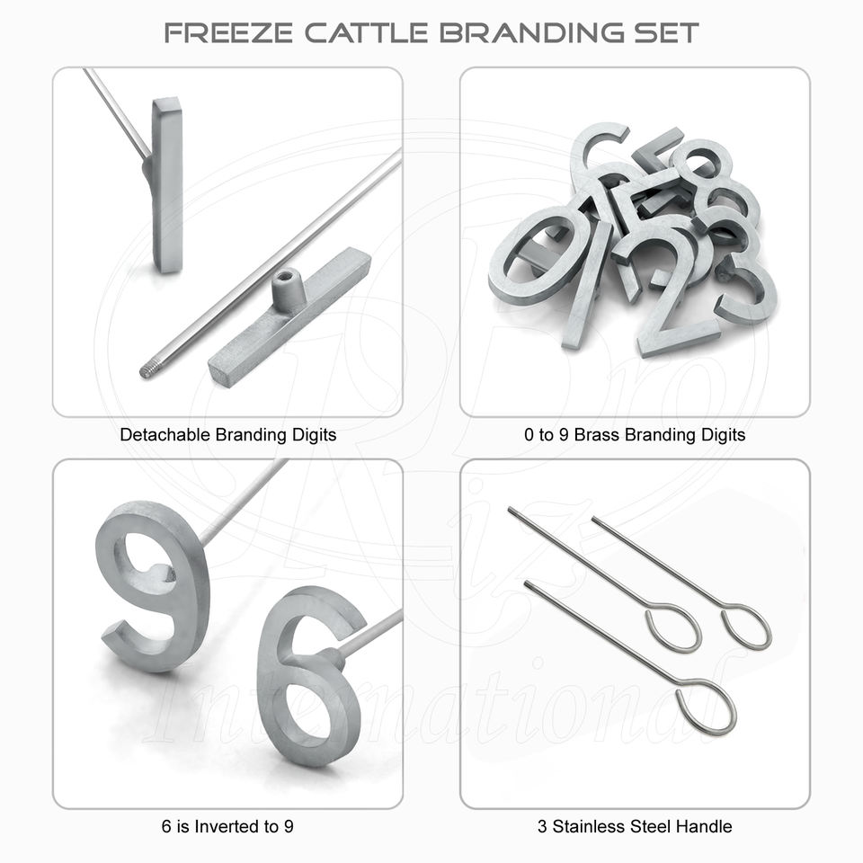 ชุดอุปกรณ์ตีตราสัตว์ หมายเลข 0-8 จำนวน 3 ชิ้น ด้ามจับสแตนเลสแบบเปลี่ยนได้ 9 หลัก ตัวเลขอะลูมิเนียมอัลลอยด์ 6 หลัก แบบกลับด้านได้ 9 หลัก