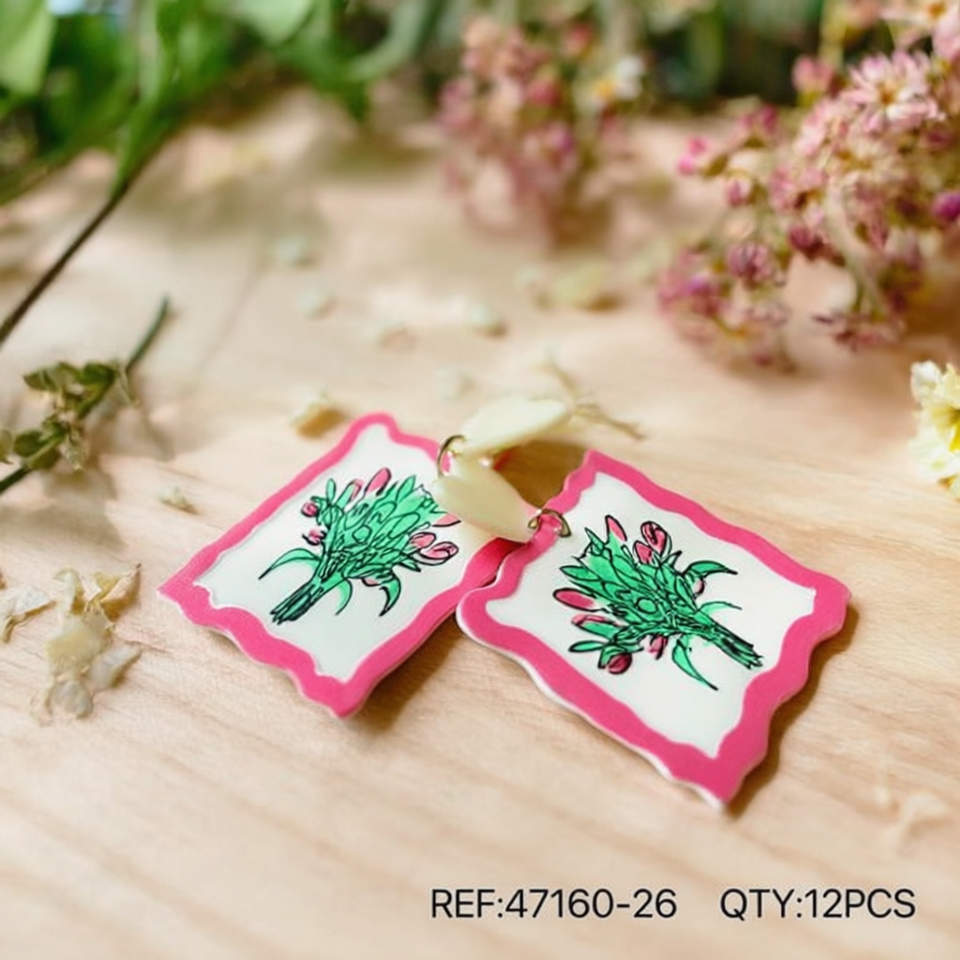ต่างหูเพ้นท์ลายดอกไม้รูปหัวใจแบบห้อย ต่างหูแฟชั่น 12 ชิ้น