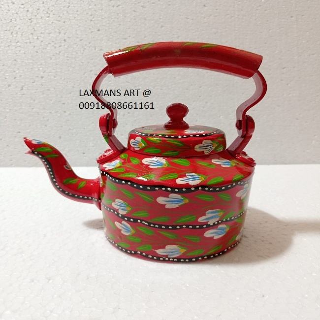กาต้มน้ำชาโลหะทาสีจากอินเดียกาต้มน้ำตกแต่งบ้านกาต้มน้ำทำด้วยมือกาต้มน้ำทาสีอลูมิเนียม