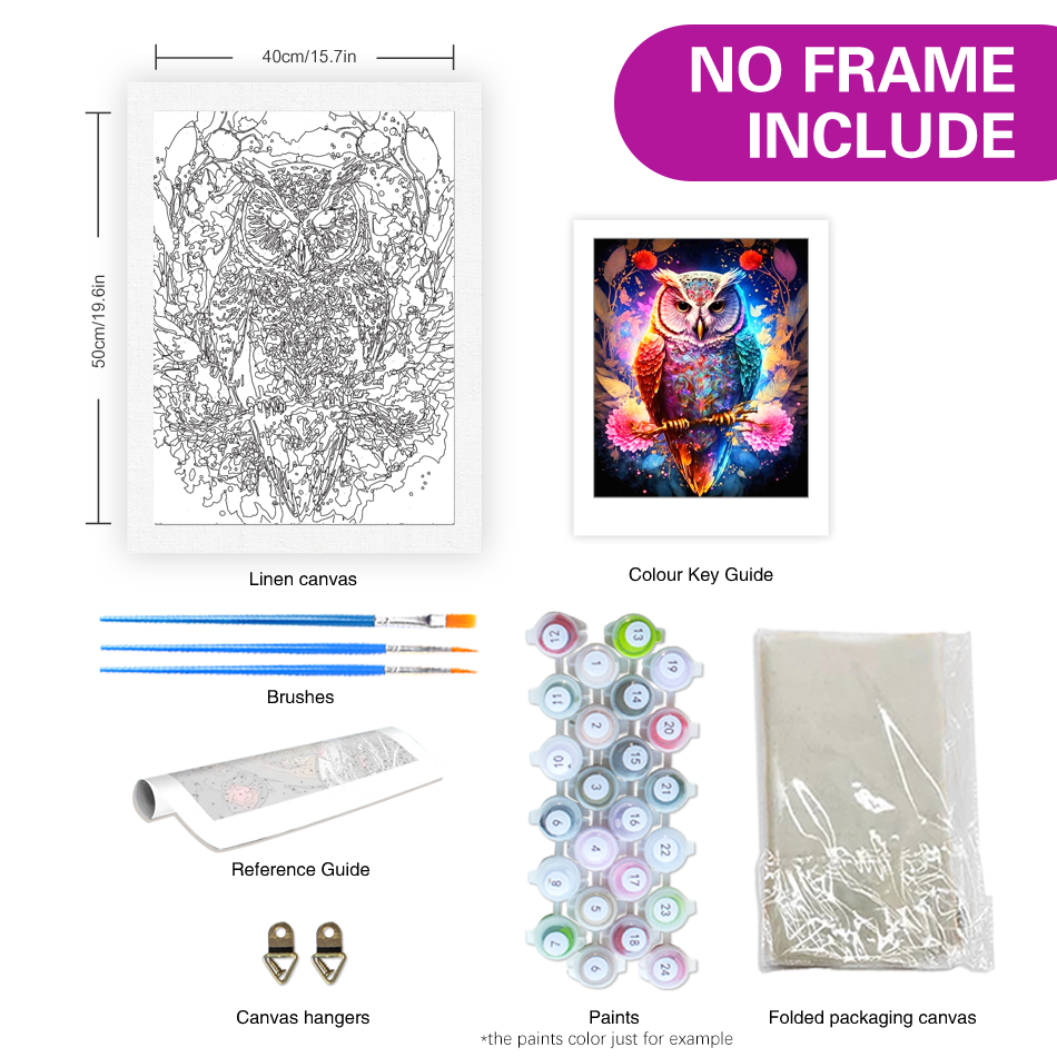 ภาพระบายสีตามตัวเลขสำหรับผู้ใหญ่ ภาพนกฮูกสีสันสดใส วาดบนผ้าใบสำหรับตกแต่งบ้าน ชุดภาพดอกไม้ ของขวัญ DIY ขนาด 40x50