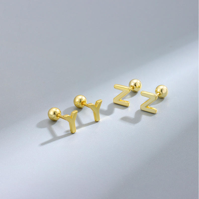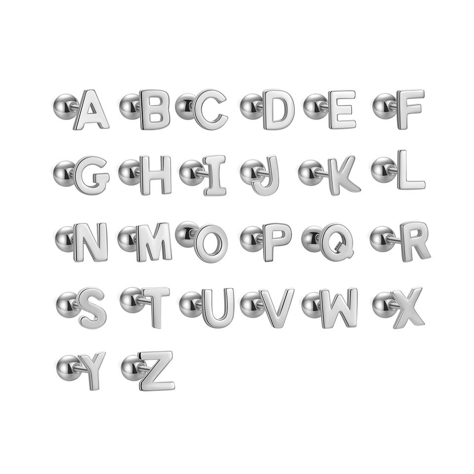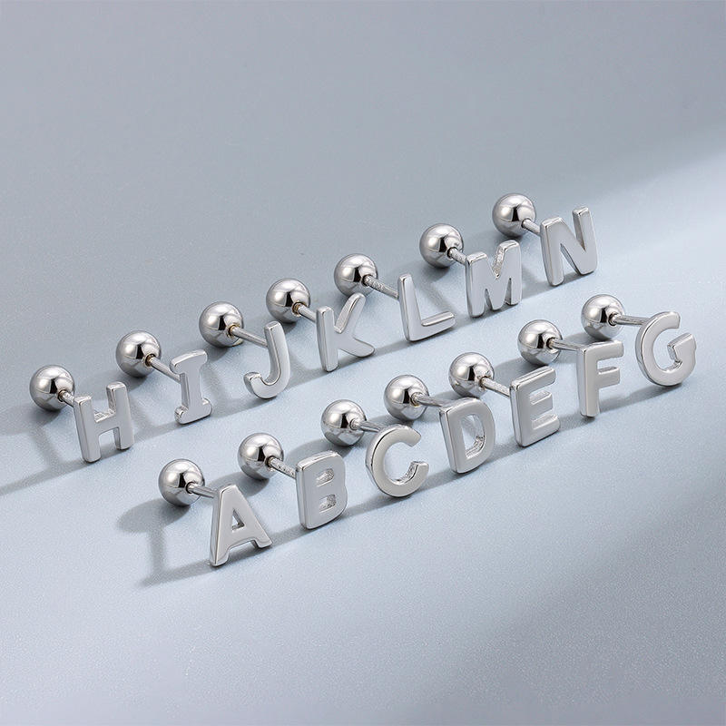ต่างหูเงินแท้ 925 รูปตัวอักษร A ถึง Z แบบเกลียว สำหรับผู้ชายและผู้หญิง