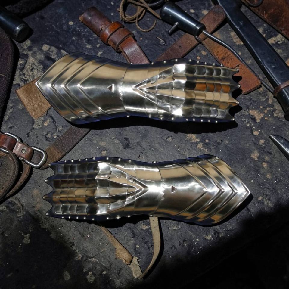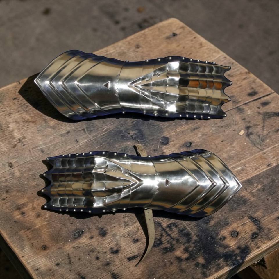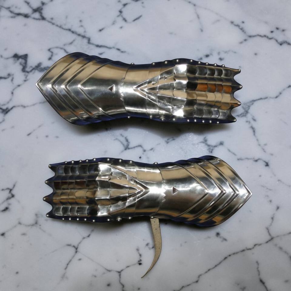 ชุดถุงมือโลหะเคลือบเงินสไตล์โกธิคยุคกลาง สำหรับแต่งกายฮาโลวีน คอสเพลย์ งานศิลปะ และของสะสม
