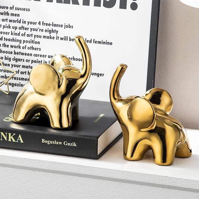 ชุดรูปปั้นช้างเซรามิกขนาดเล็ก 4.9 นิ้ว ดีไซน์อาร์ตเดโค สีทอง ตกแต่งบ้าน สำหรับงานแต่งงานและงานเทศกาลดีวาลี