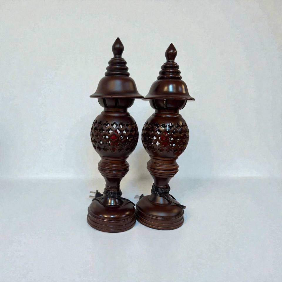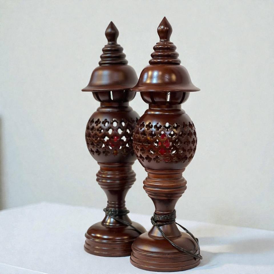 โคมไฟรูปทรงรังผึ้งไม้คู่ โคมไฟตั้งโต๊ะไม้ทำมือและโถใส่เทียน ราคาสมเหตุสมผล