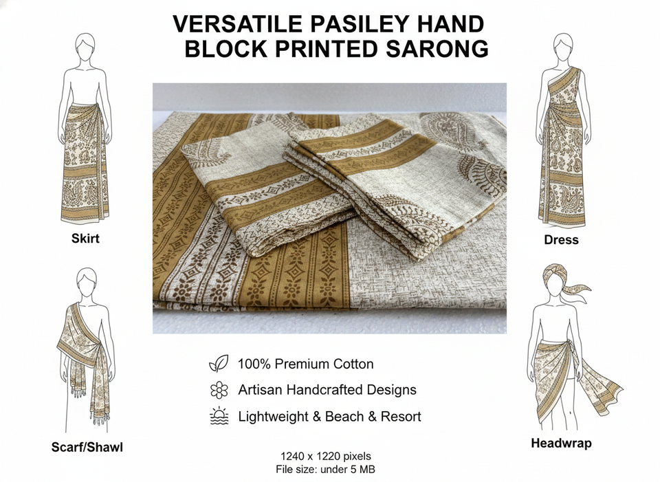 ผ้าซิ่นพิมพ์ลายเพสลีย์ ผ้าฝ้ายพิมพ์ลายด้วยมือ สีพาสเทลอ่อน สำหรับใส่ไปทะเลในฤดูร้อน ผ้าปาเรโอ กระโปรงพันตัว ผ้าพิมพ์ลายดอกไม้เนื้อนุ่ม พิมพ์ลายแบบชาวชาวปั๊ยปุระ ใช้คลุมตัวที่สระว่ายน้ำ