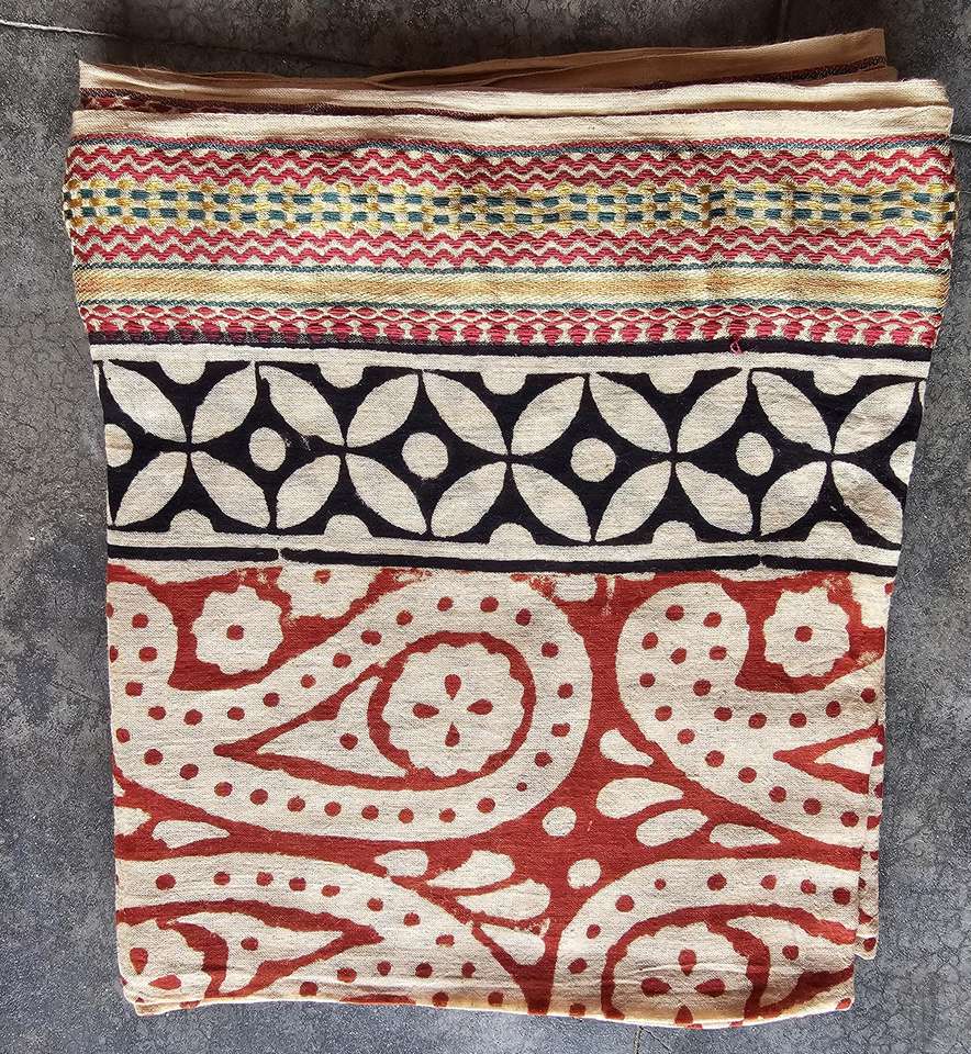 ชื่อสินค้า:ผ้าโสร่งพิมพ์ลายบล็อกขอบไหมทอง