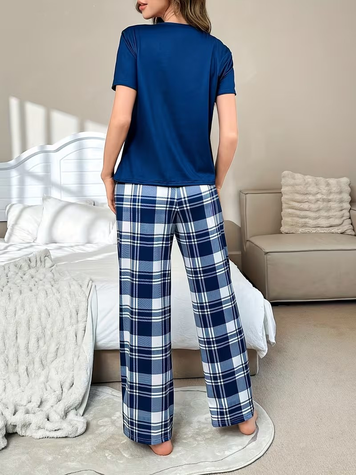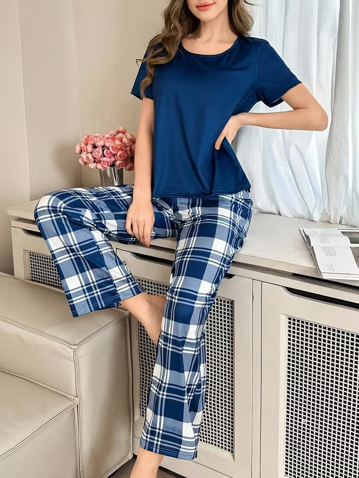 ชุดนอนผู้หญิง ชุดนอนราคาถูก แขนสั้น ชุดลำลอง เสื้อยืดและกางเกงขายาว ชุดนอนคอลเลคชั่นจากผลิตในบังกลาเทศ