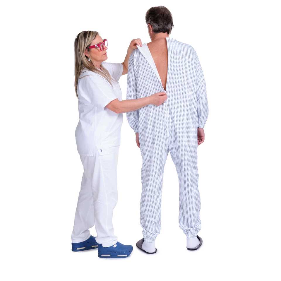 Pajamas for elderly with Dementia and Alzheimer Zip on Back - Winter Fabric Fleece Fabric 9012-F
