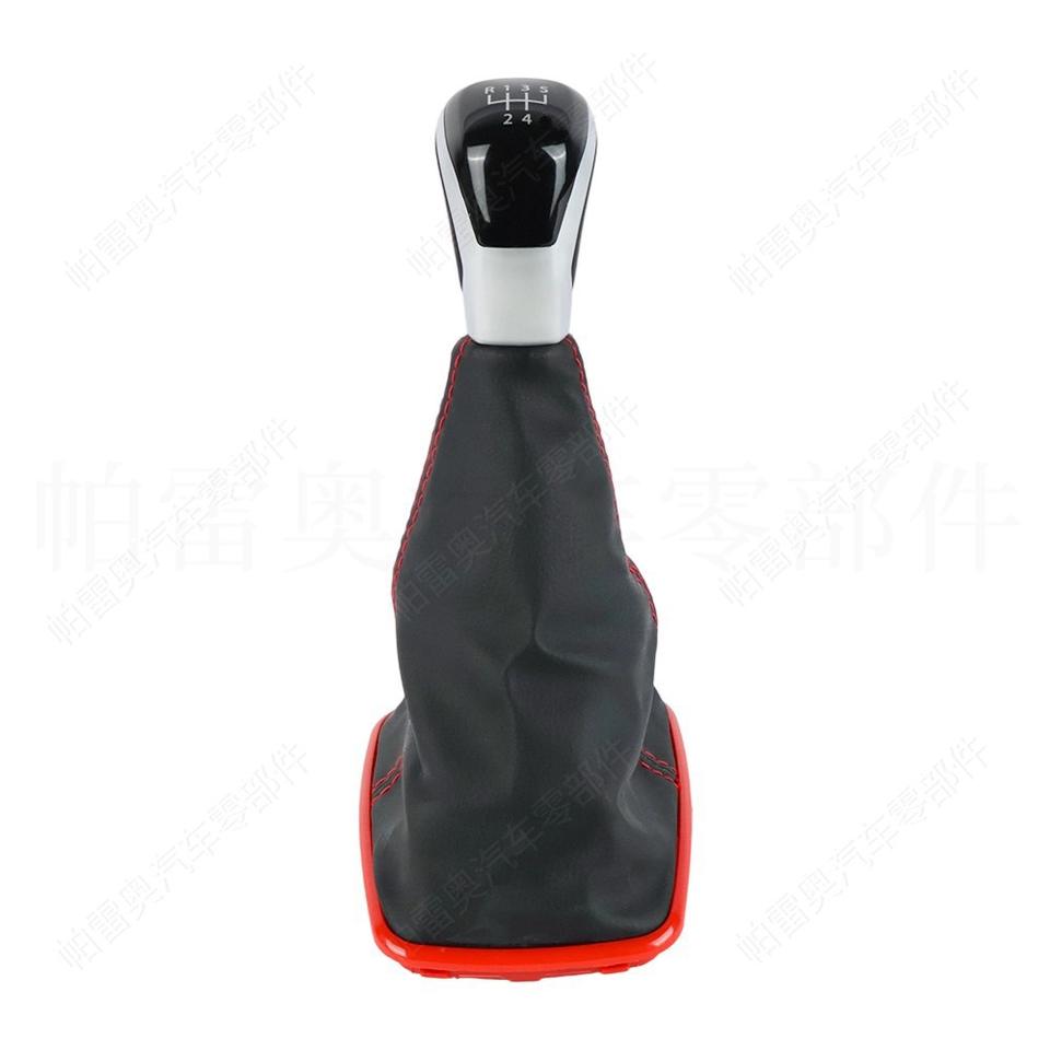 Pakao Car Gear Knob 5-Speed Leather Shift Lever With Red Frame And Stitching Ergonomic Design For Manual Transmission
