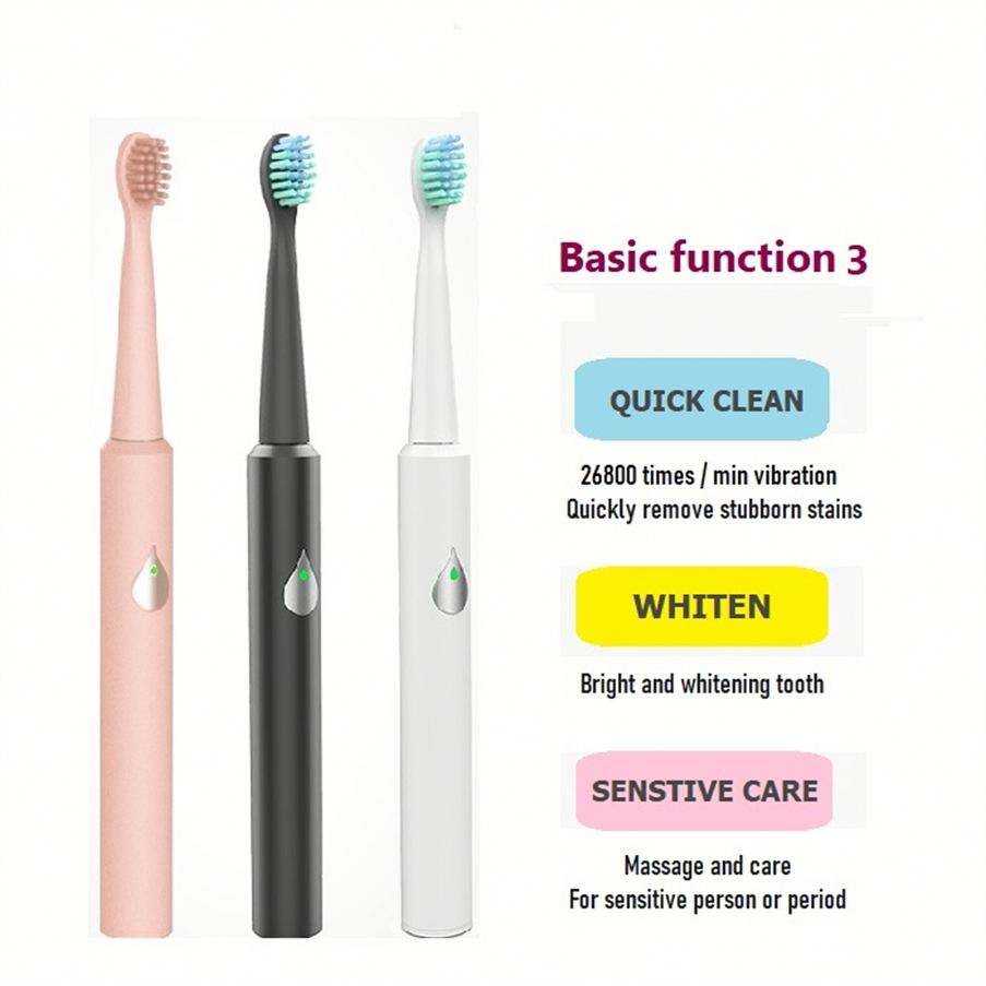 Pakiss แปรงสีฟันไฟฟ้าอัลตราโซนิคอัจฉริยะขนแปรงนุ่มกันน้ำ IPX7โหมดอัตโนมัติดีไซน์ปลอดภัย