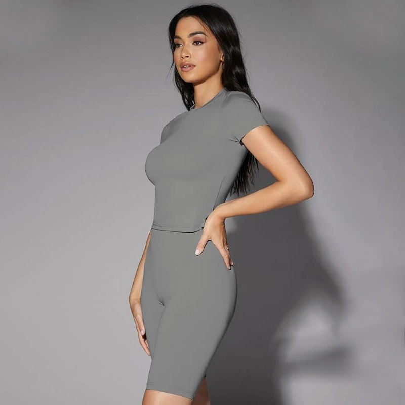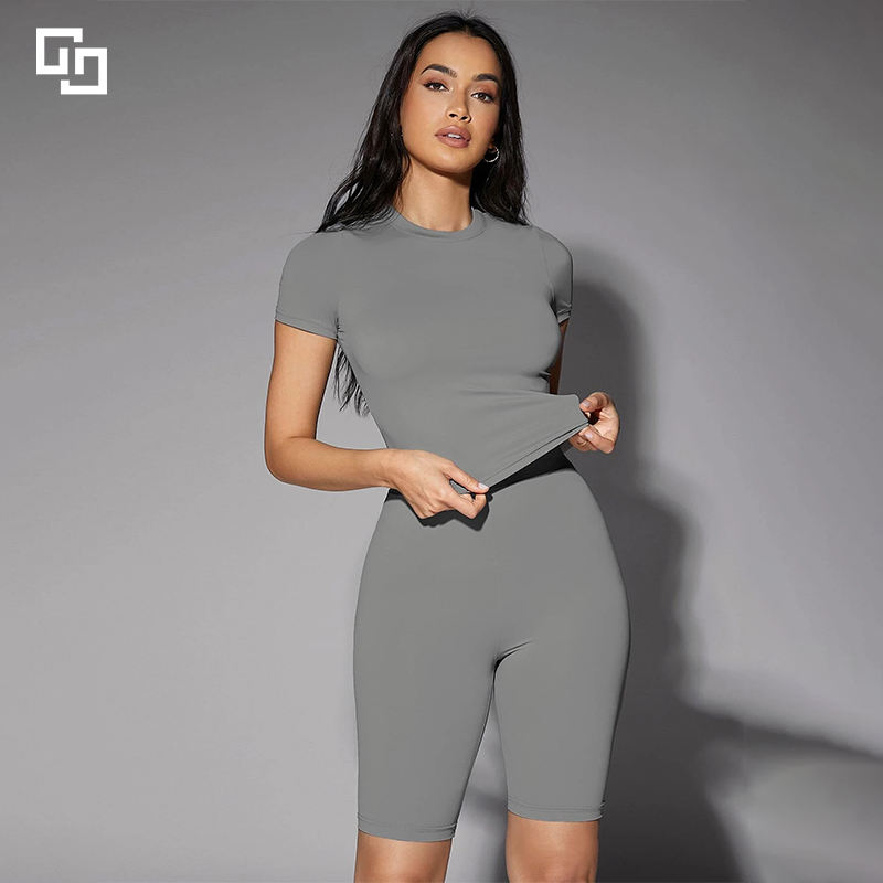 ชุดเสื้อยืดกางเกงขาสั้นสีพื้นราคาดีที่สุดจากปากีสถาน ผ้าฝ้าย 100% เสื้อยืดแขนสั้นสำหรับผู้หญิงพร้อมกางเกงขาสั้น