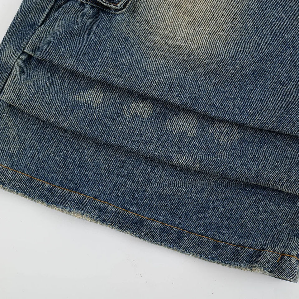 ผู้ผลิตเสื้อผ้าจากปากีสถาน กางเกงยีนส์ขาสั้นทรงหลวมแบบมีกระเป๋าซักล้างได้สำหรับผู้ชาย กางเกงยีนส์ขาสั้นทรงหลวมแบบตาข่าย