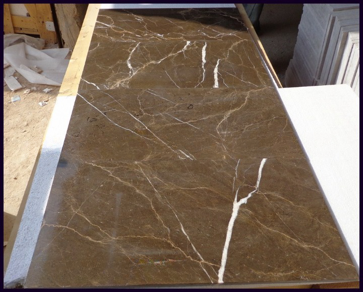 กระเบื้องหินอ่อนสีน้ำตาลกาแฟสำหรับตกแต่งบ้านจากปากีสถาน ขนาดสั่งทำได้ กระเบื้องหินอ่อนสีน้ำตาลกาแฟธรรมชาติ สำหรับปูพื้นและผนังอย่างหรูหรา