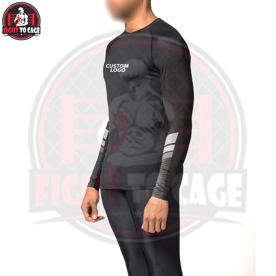 เสื้อรัดกล้ามเนื้อ MMA คุณภาพดีที่สุด ผลิตในปากีสถาน สีดำเทา แห้งเร็ว แขนยาว ผ้าโพลีเอสเตอร์/สแปนเด็กซ์/ไนลอน 220 กรัม