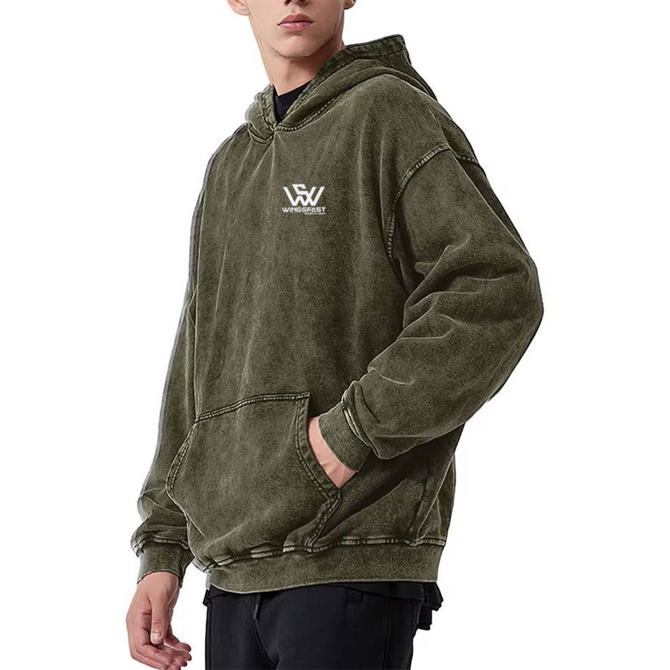 เสื้อฮู้ดผู้ชายซักและแดดซีดจางทำจากปากีสถานโลโก้ออกแบบได้ตามต้องการราคาถูก