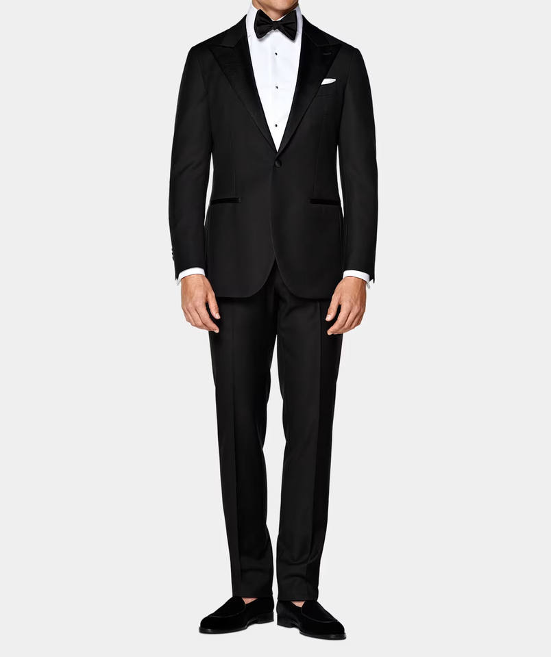 ชุดทักซิโด้สีดำผ้าซาตินคุณภาพสูงทรงหรูหราสำหรับผู้ชาย ผลิตในปากีสถาน ชุดสูทลำลองสำหรับงานแต่งงานทรงเข้ารูปทันสมัย สีดำ