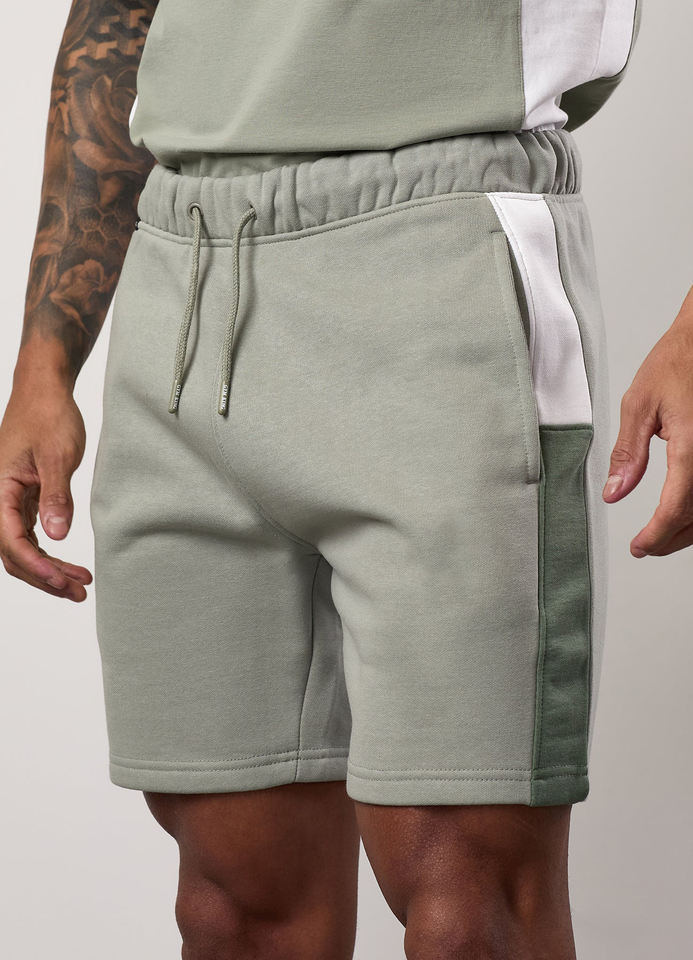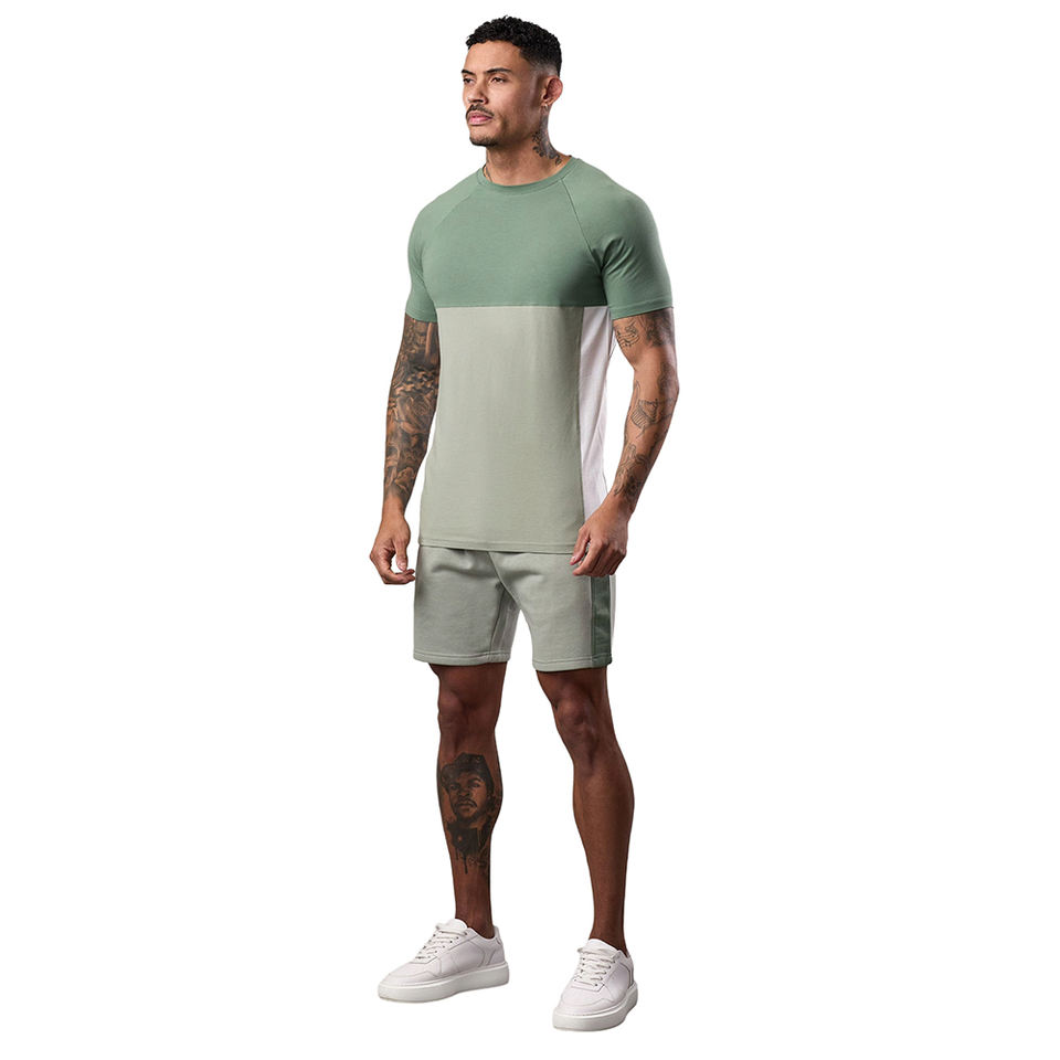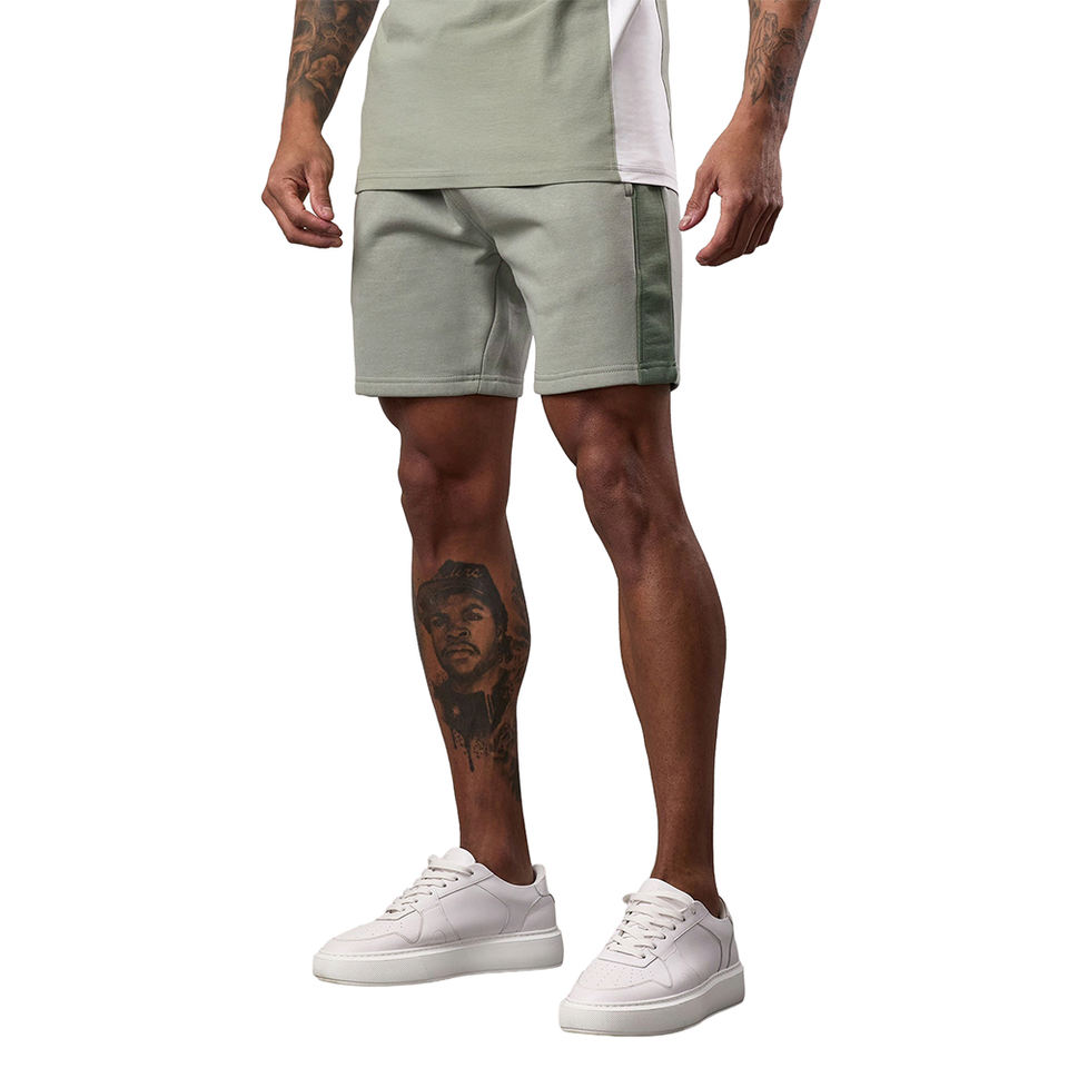 Pakistan กางเกงขาสั้นลำลองสำหรับผู้ชายเอวกลางสบายลายทึบสีตัดกัน