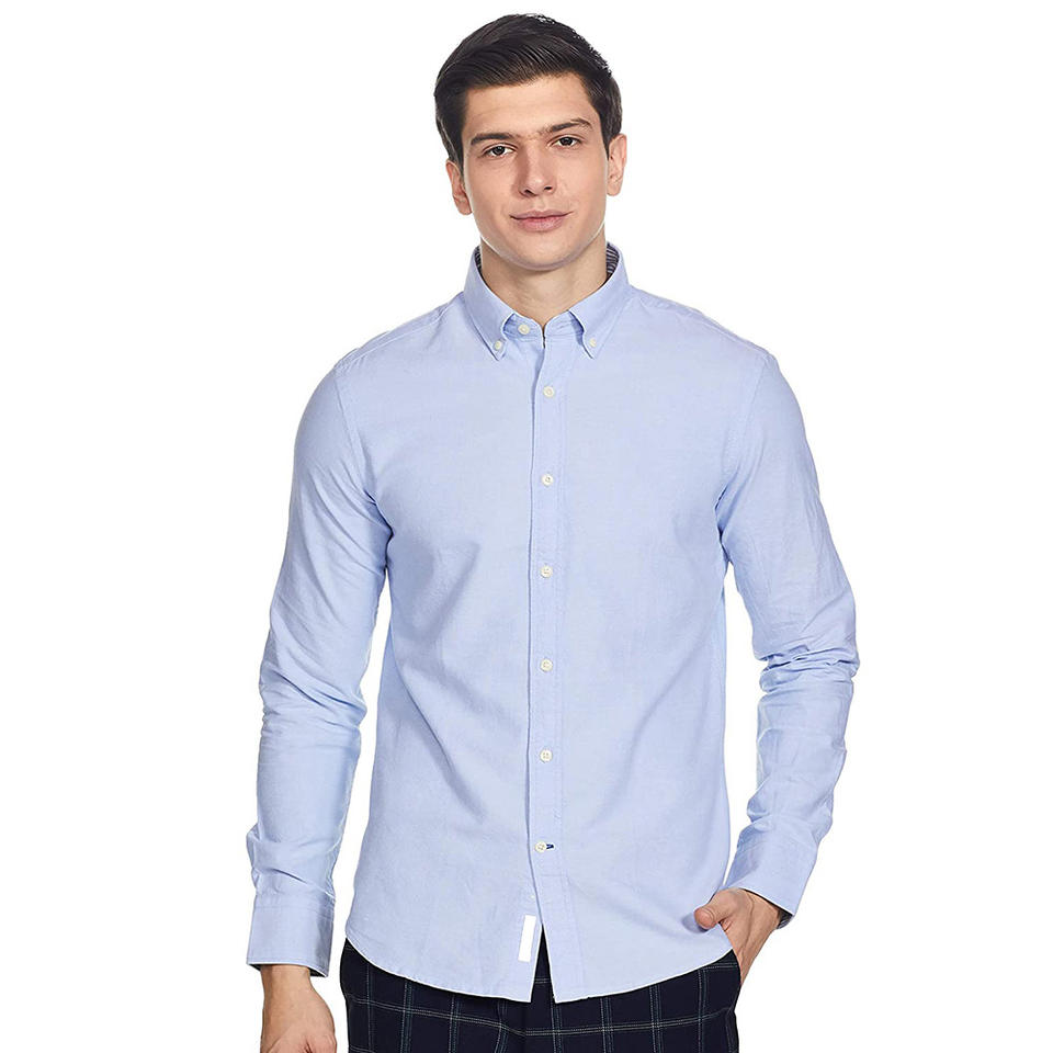 เสื้อเชิ้ตผู้ชายสีน้ำเงิน แขนยาว แบบเรียบง่าย สไตล์ออฟฟิศ ผลิตในปากีสถาน สำหรับผู้ใหญ่และเด็กผู้ชาย มีจำหน่าย